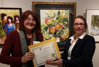 Druga nagroda za obraz zatytulowny "Les pommes en lumière" w ramach rocznego konkursu de Blainville-Art